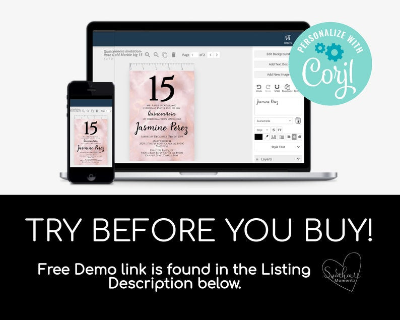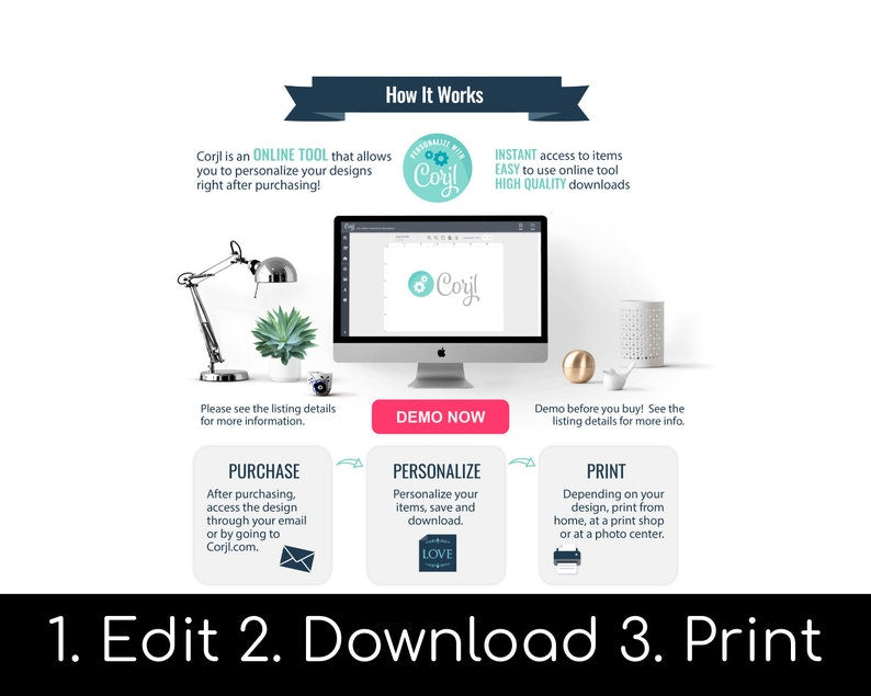 You edit the digital file from your own computer or phone on Corjl.com (recommend using Chrome)